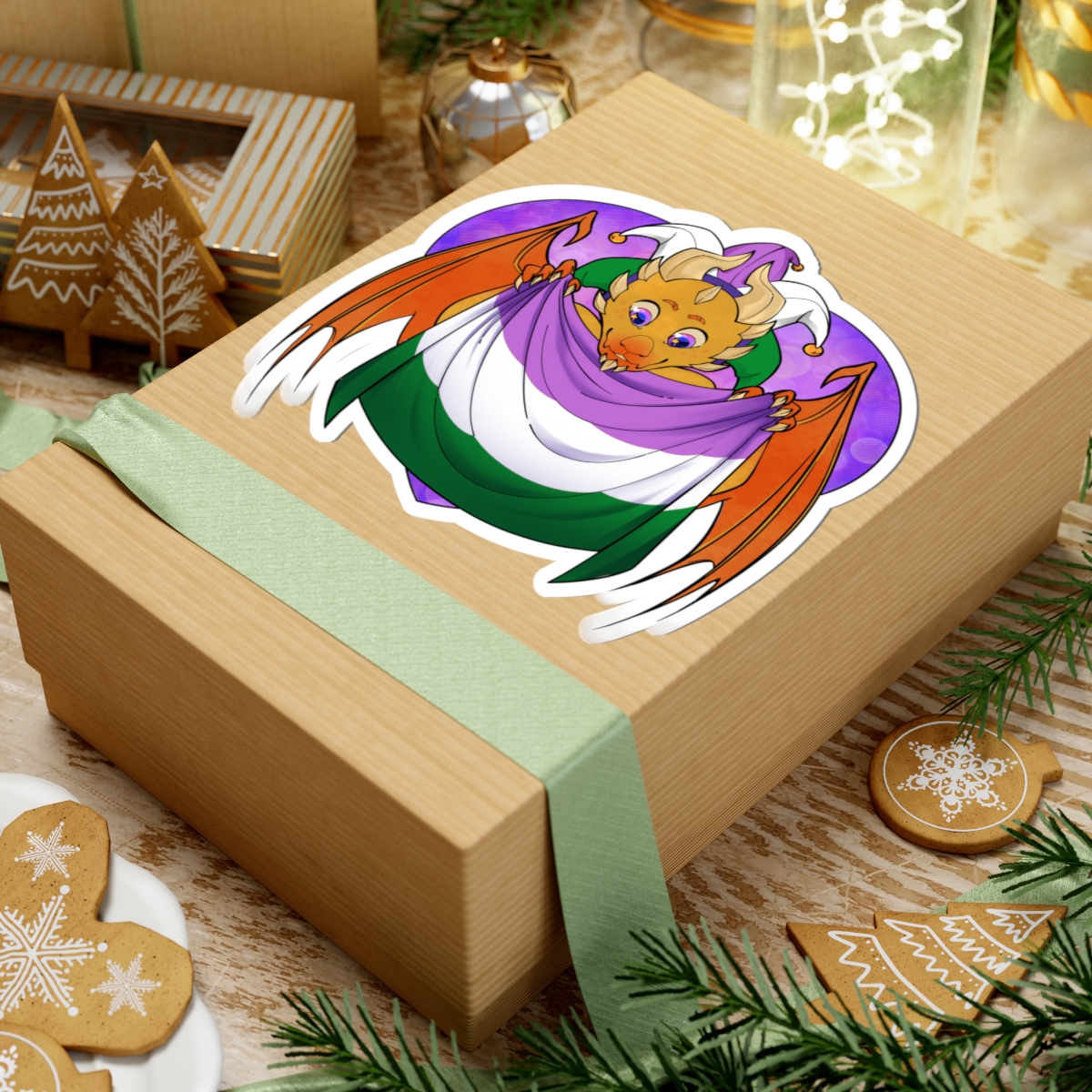 A supportive Ravi sticker featuring Genderqueer Pride colors. Smooth, long-lasting print suitable for many surfaces. This product offers quality materials and versatile everyday use.